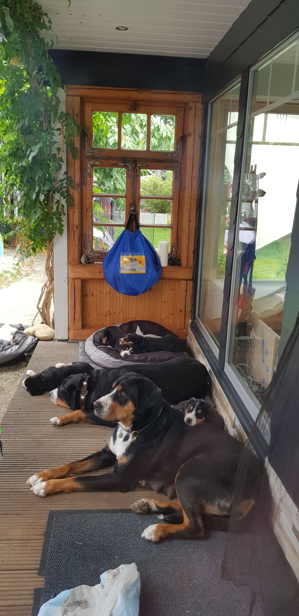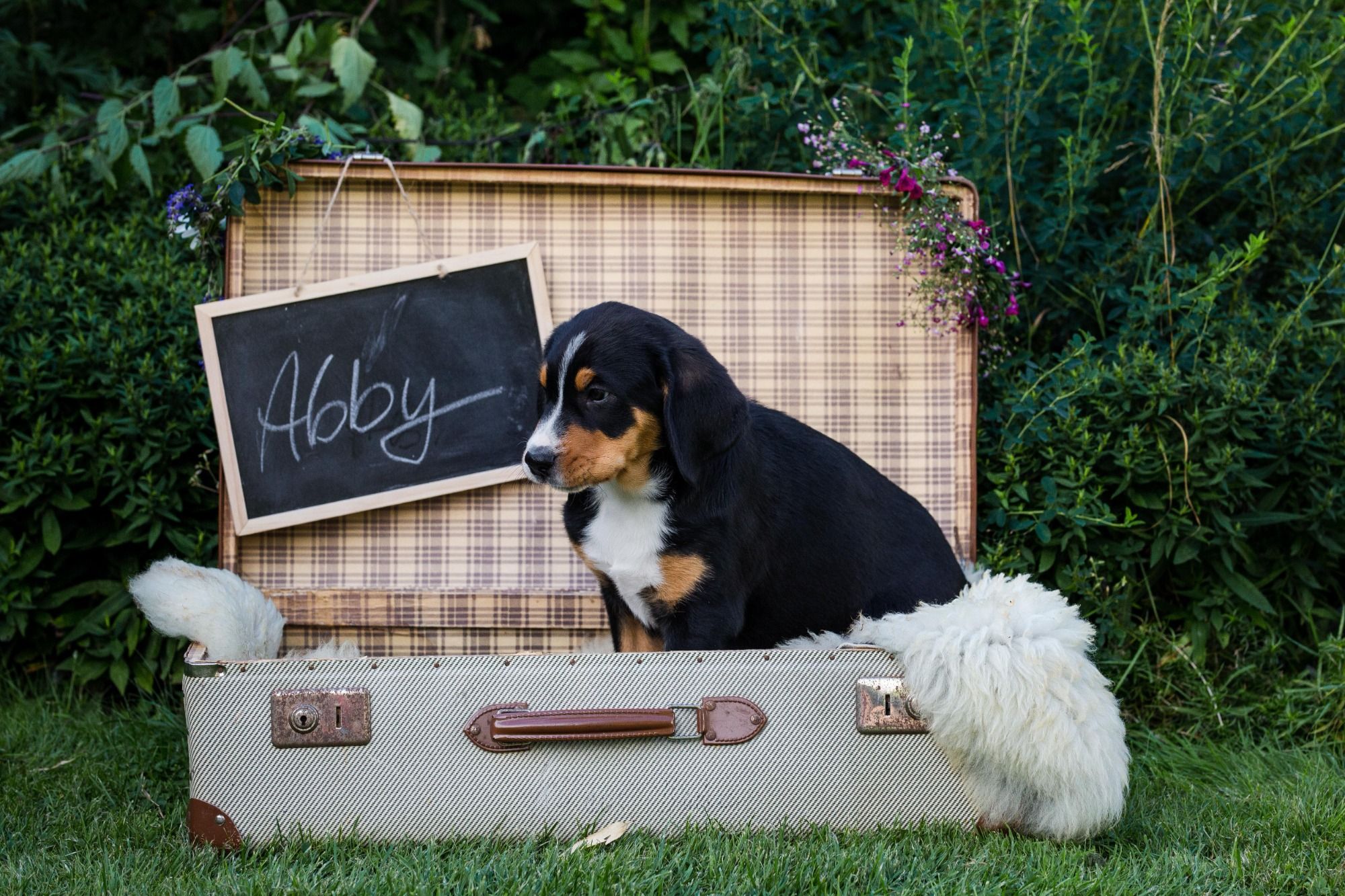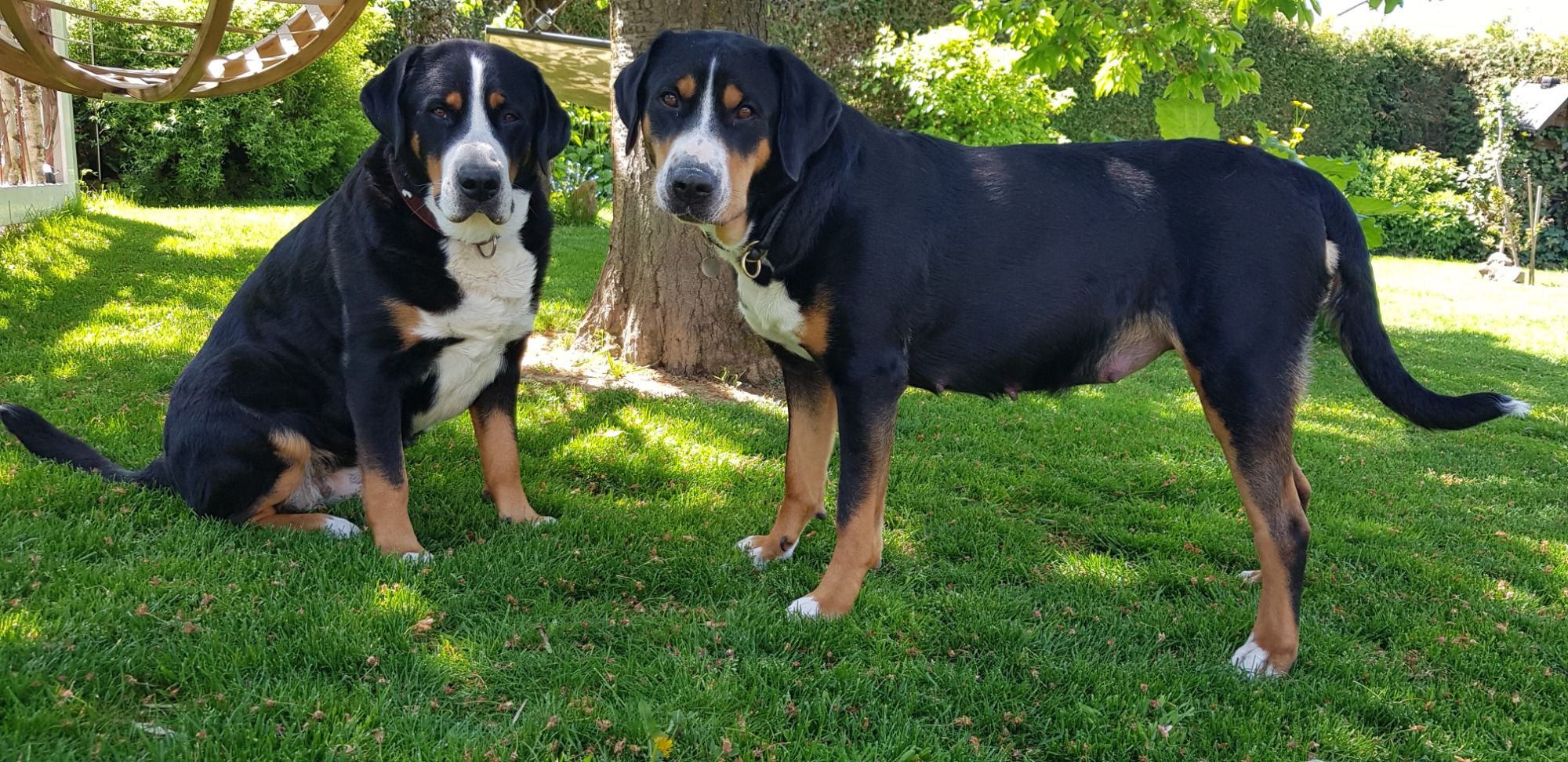 Nun entdecken unsere kleinen Großen Schweizer den Garten. Sie sind super neugierig, Angst ist ein Fremdwort.